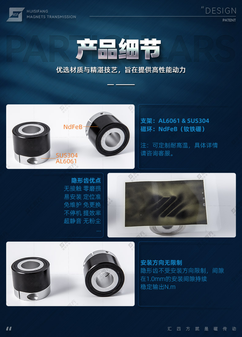 磁力輪(Magnet Gear)是利用釹鐵硼強鐵的吸力和斥力的相互作用原理,實現(xiàn)無接觸的動力傳遞裝置。在光電、半導(dǎo)體、LCD、PDP、TFT、PLC、3D玻璃、液晶模組、物流倉儲、 PCB 線路板設(shè)備等領(lǐng)域有著廣泛的應(yīng)用。